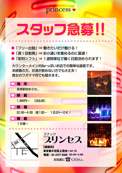 20:00〜1:00 週1回〜 1日2h〜OK! |